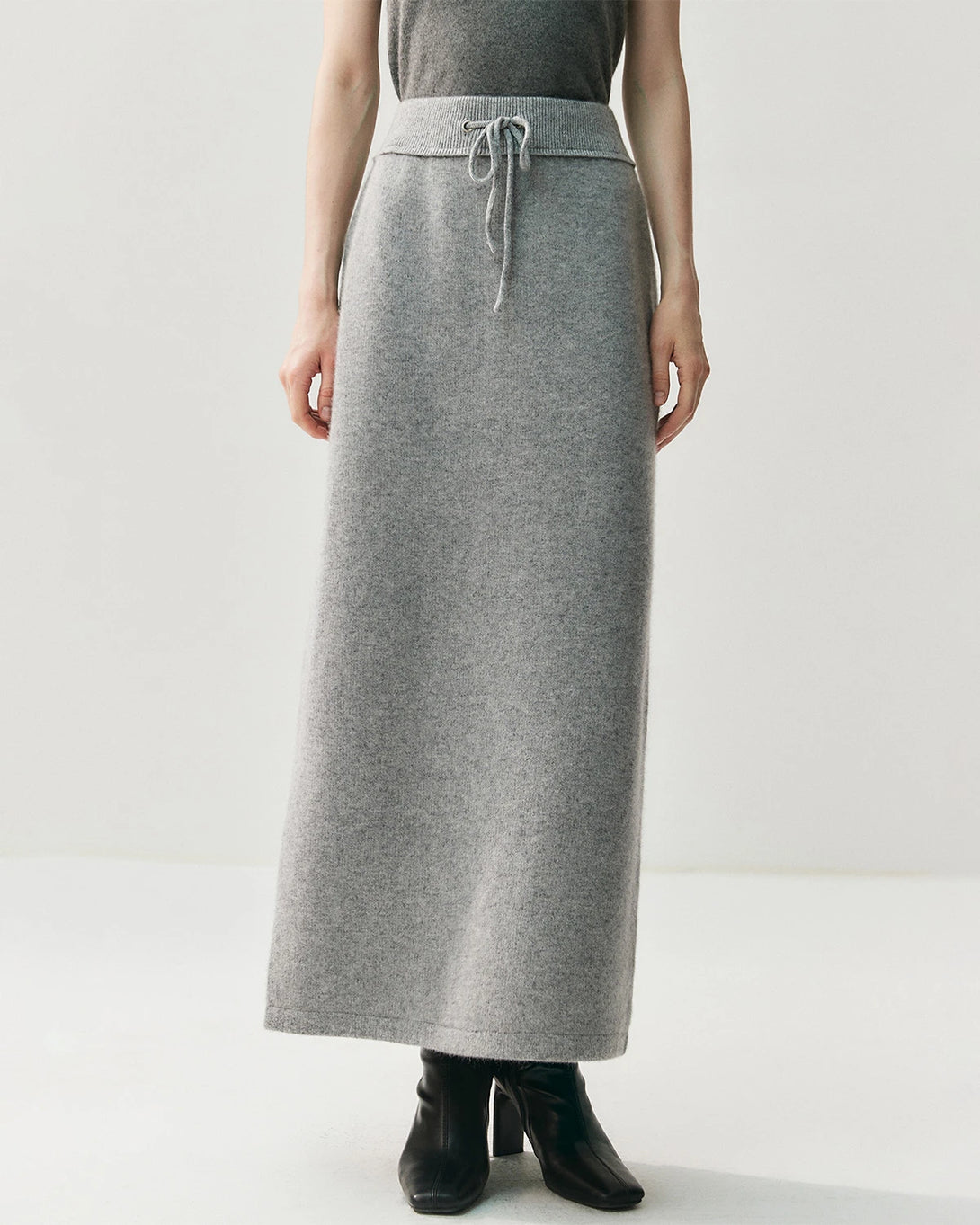Crafted from a luxurious blend of 65% Australian wool and 35% cashmere, this long cashmere skirt delivers exceptional softness, warmth, and breathability. The premium cashmere wool knit fabric offers a smooth texture and natural elasticity, ensuring comfort and an elegant drape for all-day wear.