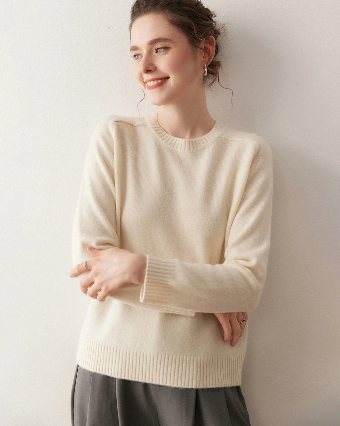 Featuring a classic round neck and elegant saddle shoulder, this cashmere pullover sweater provides a flattering fit for all occasions. Designed for comfort and style, it aligns with women's sweaters cashmere trends, cashmere turtleneck sweater options, and chic cashmere cardigan women collections.