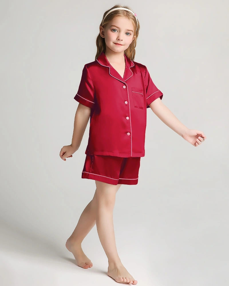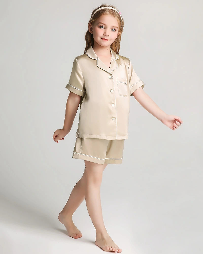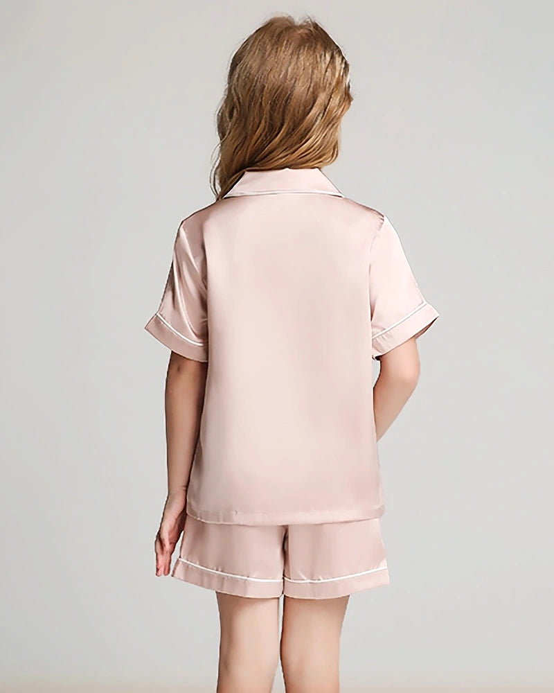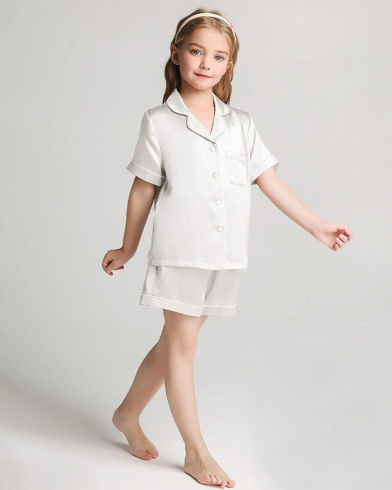 Girls Short Sleeve Silk Pajamas Set with Shorts