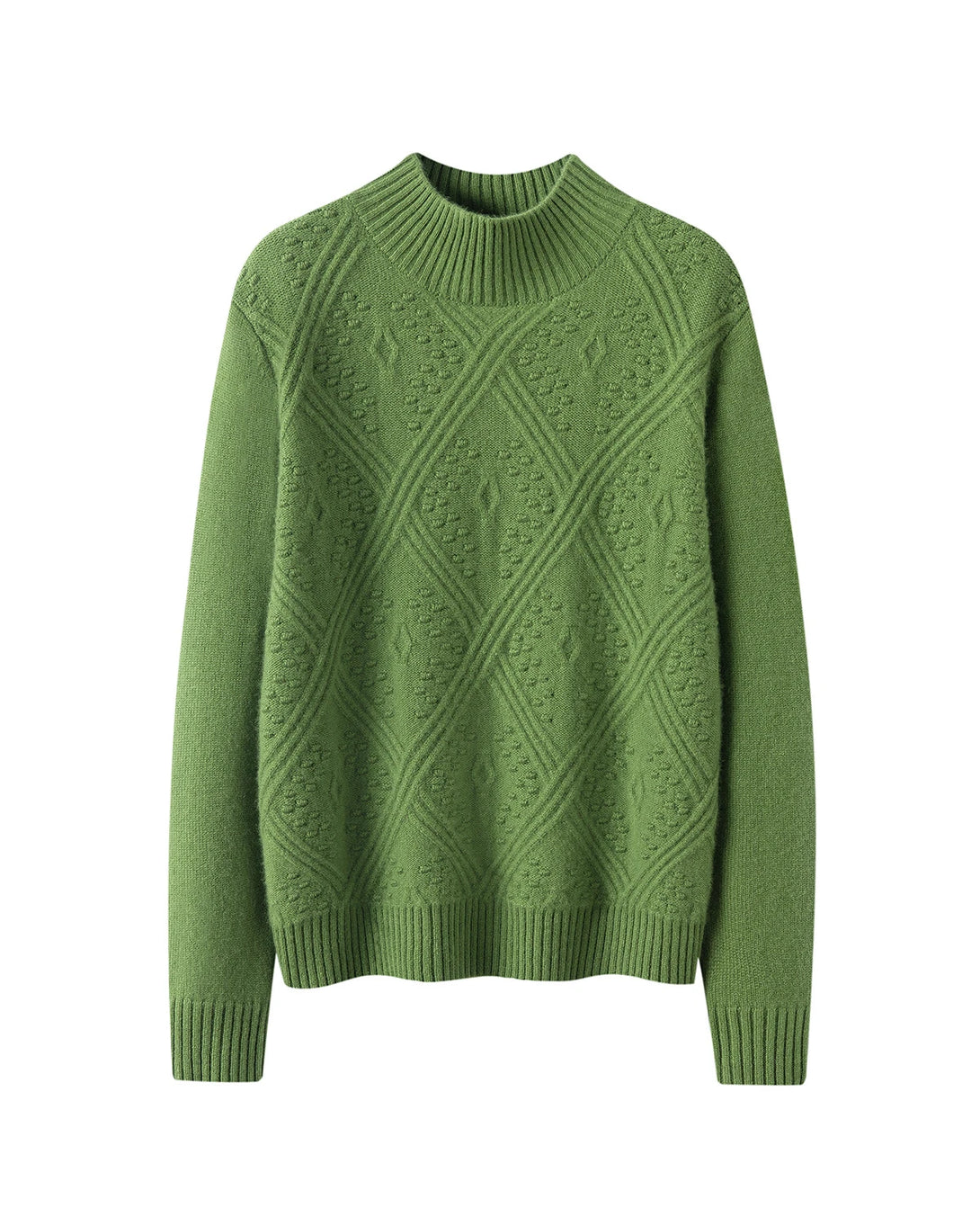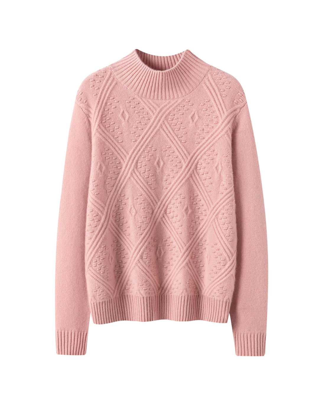 The sophisticated diamond-knit pattern adds texture and visual depth to this cashmere pullover sweater. Featuring a soft mock neck and clean silhouette, it flatters every shape while delivering cozy warmth. This timeless ladies cashmere sweater combines classic charm with a refined, modern feel.