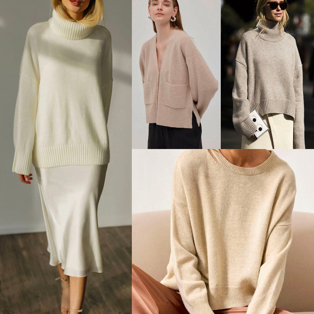 For cashmere sweaters, we recommend a minimalist approach, favoring high or crew necklines in solid colors such as black, white, gray, and camel for timeless elegance. Introducing vibrant colors can bring a fresh, invigorating touch to your wardrobe. Many customers find that pure cashmere sweaters become long-lasting favorites, worn for several years with proper care. Investing in premium materials means you don’t need to replace them frequently, and they can stay in excellent condition for years.