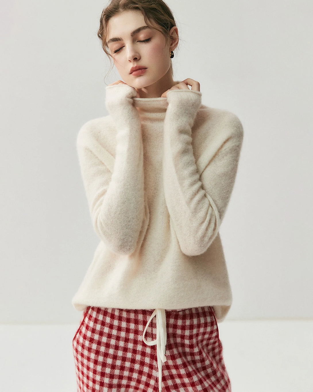 Designed with a classic turtleneck and full-length sleeves, this silk cashmere knit pullover adds timeless sophistication. The clean silhouette highlights the versatility of women’s cashmere sweaters, perfect for both layering and stand-alone styling.