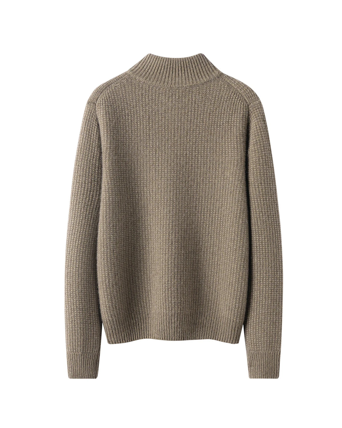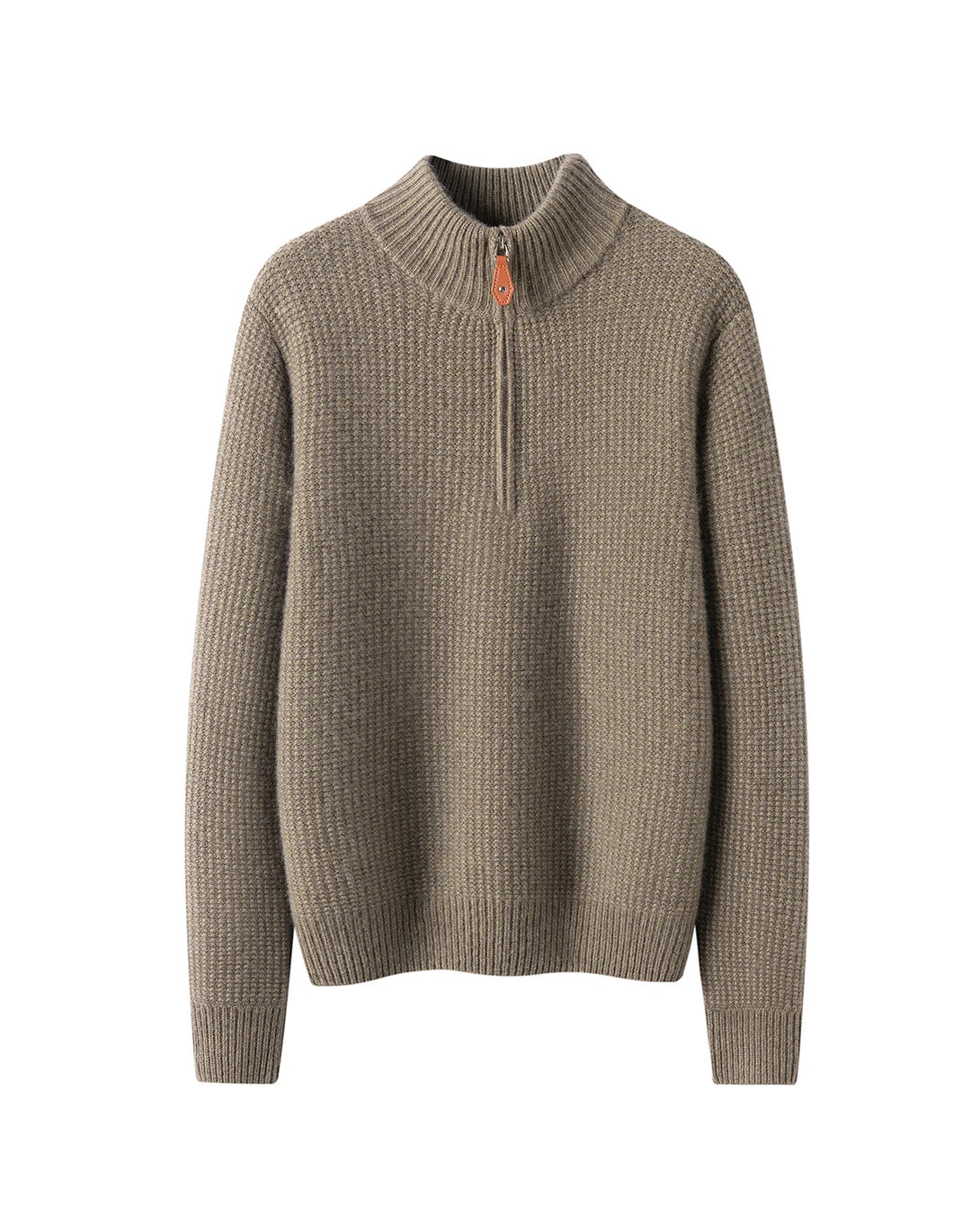 This cashmere pullover sweater features a modern half-zip neckline accented with a sleek leather pull tab for a touch of sophistication. The zip-up detail allows easy styling versatility — wear it zipped for warmth or slightly open for a relaxed, casual look. Perfectly tailored for a flattering fit, this women’s cashmere jumper combines minimalist luxury with fashion-forward design.
