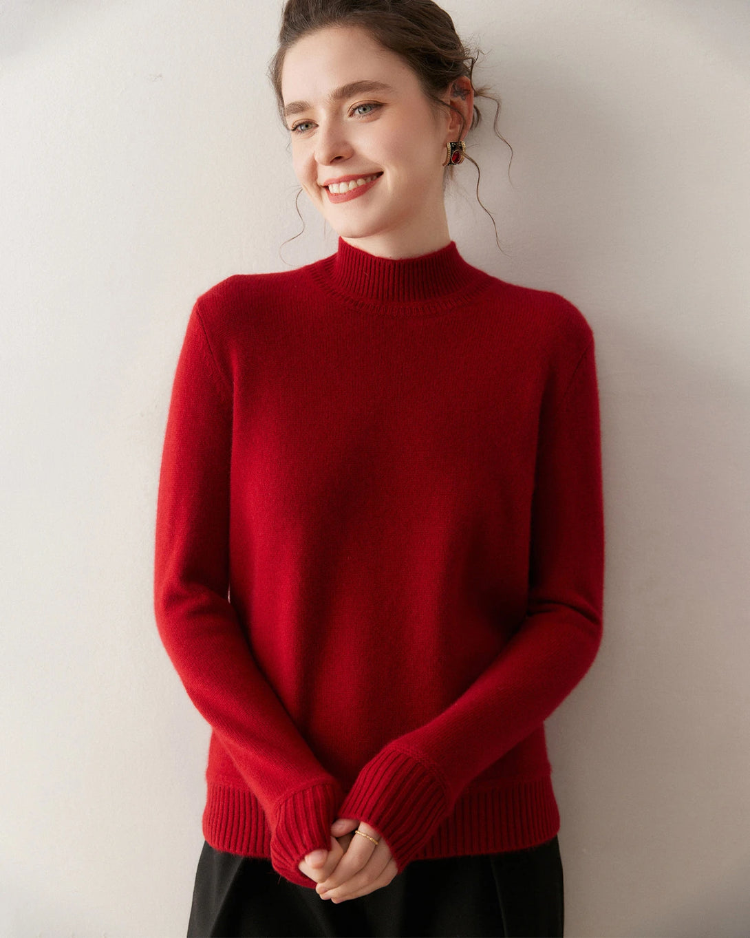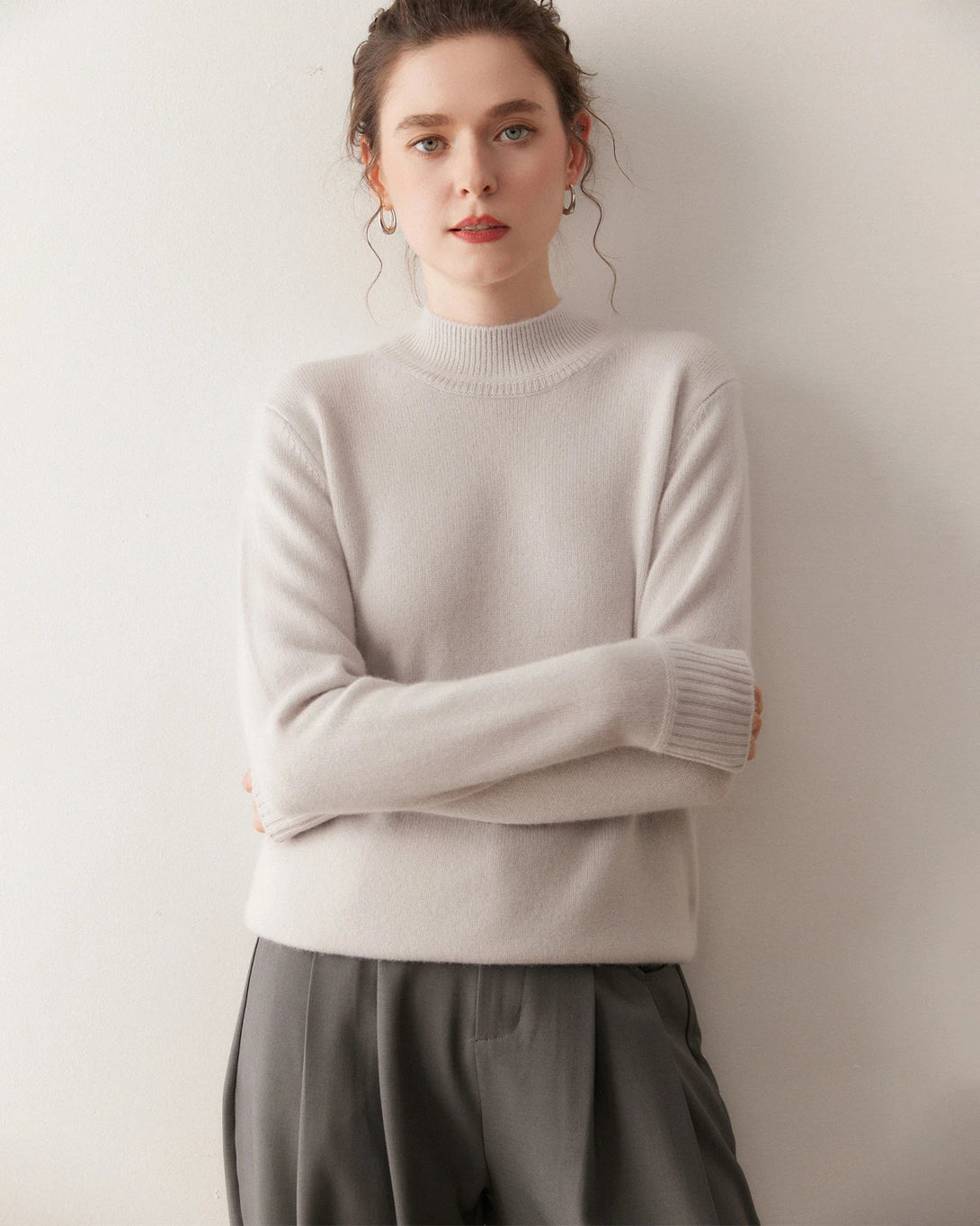 Designed with a sleek mock neck and a tailored silhouette, this cashmere pullover sweater captures effortless sophistication. The neckline sits gently higher than a crew neck but lower than a full turtleneck, giving a polished look that flatters the neckline while maintaining comfort and ease of wear.