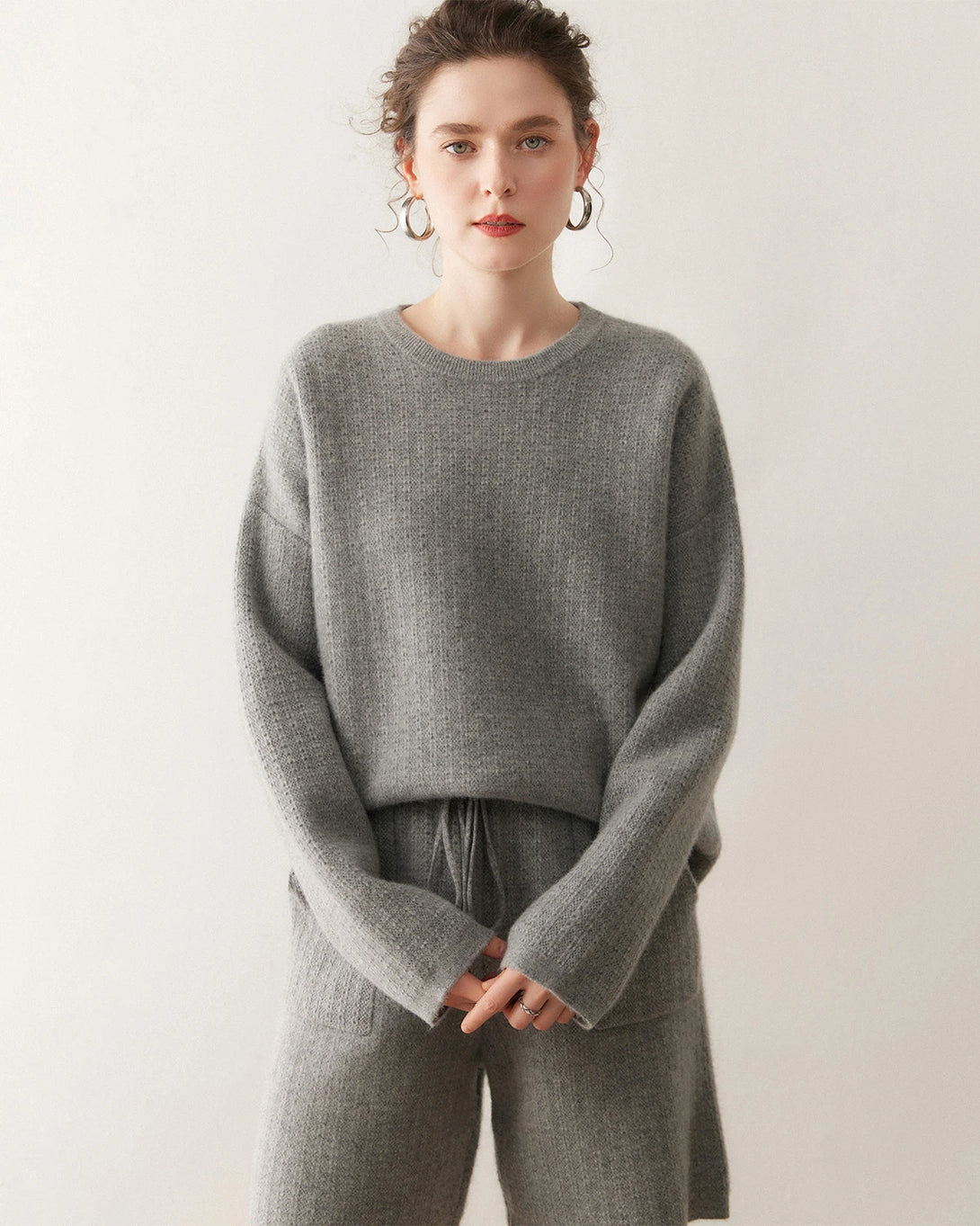 Designed for both lounging and light outings, this women’s cashmere set transitions seamlessly from home relaxation to weekend errands. The breathable wool-cashmere blend maintains gentle warmth without overheating, while the flexible knit construction moves effortlessly with your body. Ideal as a cashmere jogger set, knit sweater and shorts set, or cashmere set lounge piece, it delivers softness, functionality, and sophistication in one. Whether you’re styling it with sneakers for a sporty look or with boots for a refined finish, this versatile ensemble defines modern comfort.