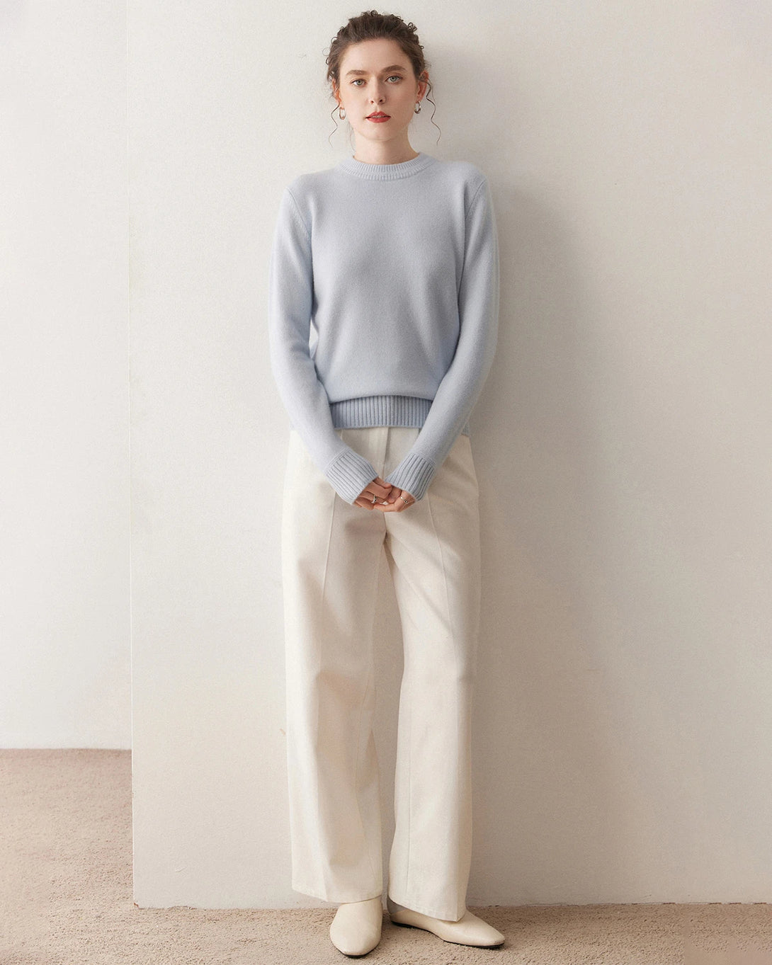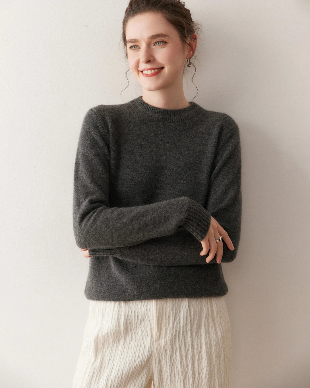 Designed with a timeless round neckline and a clean silhouette, this cashmere pullover sweater offers understated elegance. The thick knit texture adds cozy volume without bulk, making it perfect for layering or wearing alone. A versatile piece for women seeking both style and comfort.