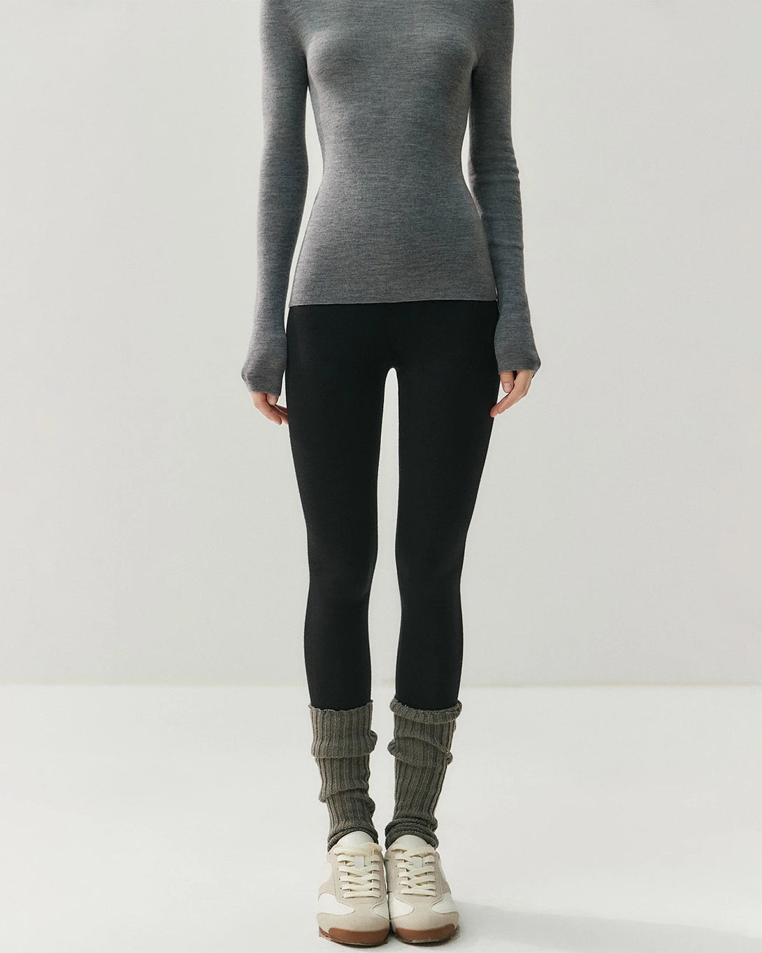 Designed in a slim fit silhouette, these women’s wool pants provide a sleek and comfortable look that flatters the body’s curves. The minimalist style transitions effortlessly from loungewear to layering essentials, making them ideal as thermal wear leggings or ladies wool pants. Perfectly combining practicality and elegance, they redefine classic long johns for women with a refined modern edge.
